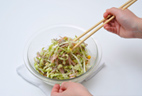 ➊雪国まいたけは手で細かくさいて耐熱皿に入れ、Aを絡めてラップをかける。